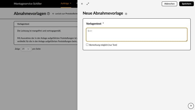 Du kannst vorgefertigte Texte für deine digitalen Abnahmen auf der Baustelle erstellen.