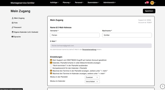 - Gewähre dem Craftboxx Support in den "Einstellungen" Zugriff auf deinen Account. So kann der Support bei Problemen schnell helfen.
