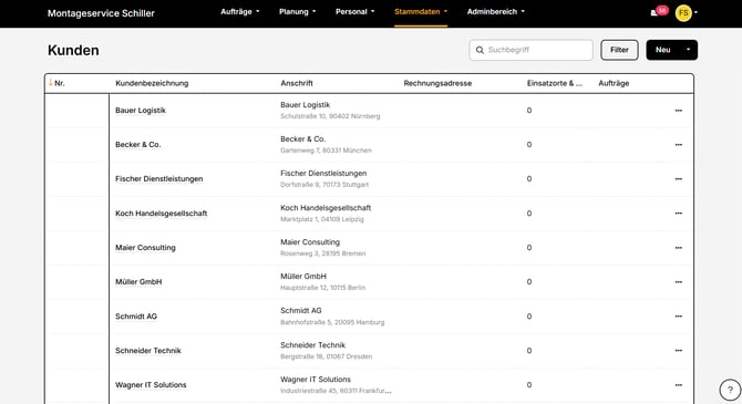 - Im Bereich Stammdaten kannst du deine Kunden einsehen und pflegen.