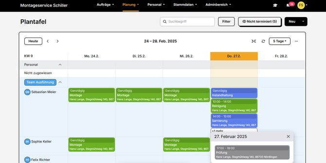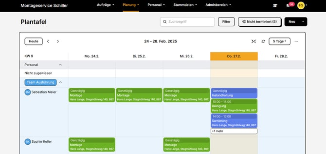- Sowohl im Planer als auch im Kalender siehst du maximal drei Termine pro Tag, der Rest wird unter "+ mehr" zusammengefasst.
