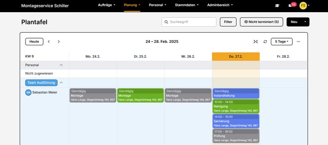 - Zurück im Planer/ Kalender, werden dir nun alle Termine für den Tag angezeigt.